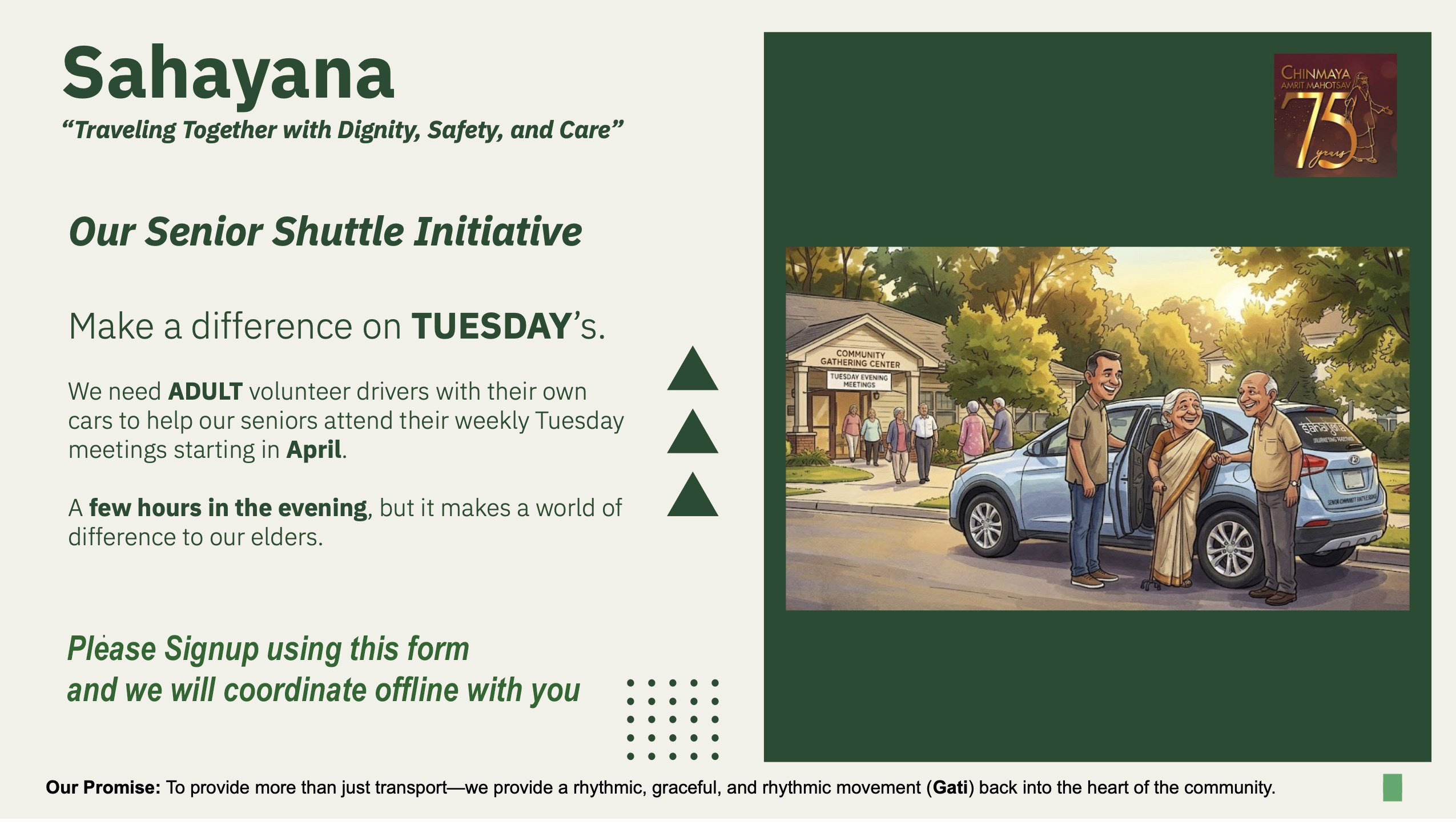 We are excited to launch Sahayana’s Senior Shuttle Initiative—a program dedicated to helping our elders attend their weekly Tuesday meetings safely, with dignity, and care.